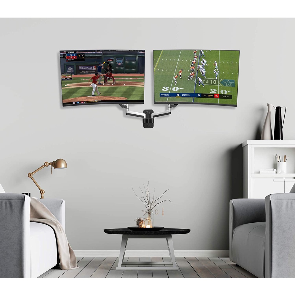ULTi Dual Monitor Wall Mount, Gas Spring Built-in Full Motion Arm for Flat & Curved Screens, VESA, Cable Management, 32'
