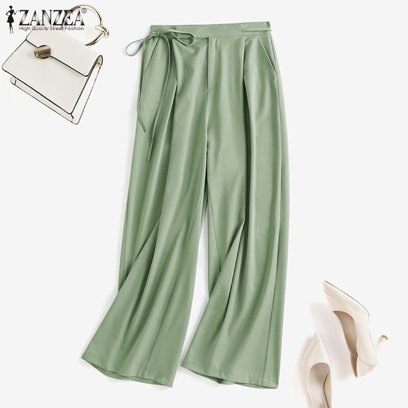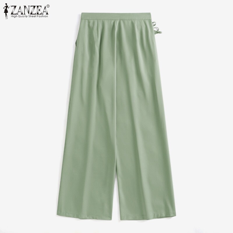 ZANZEA Korean Style Womens Button Lace-up High Waist Chic Trousers Wide Leg Pants Slacks