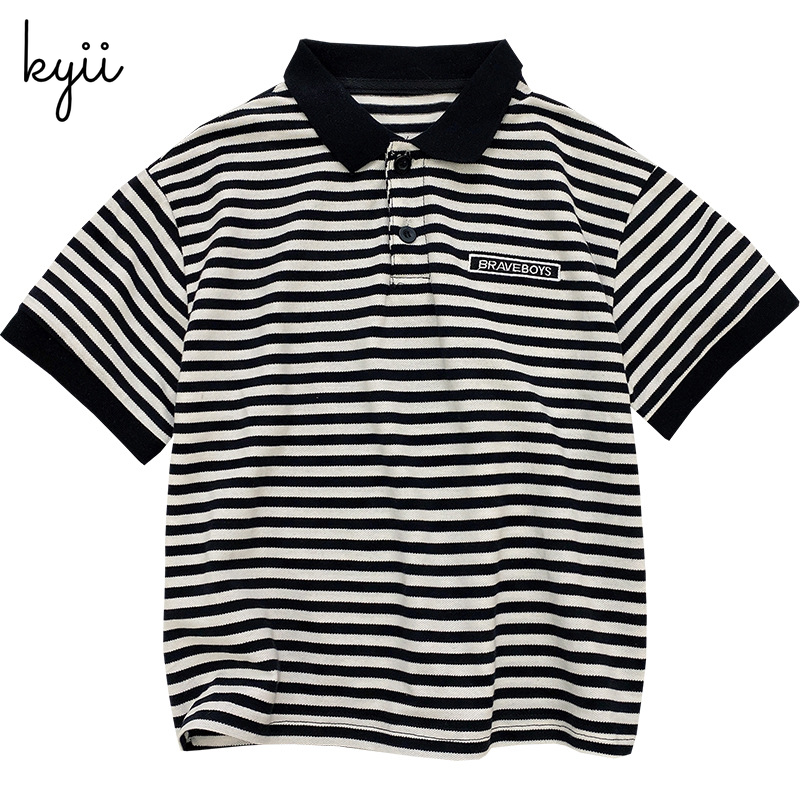 KYII stripe short sleeve Casual boys cotton summer loose shirt Korean Shirt kyb041