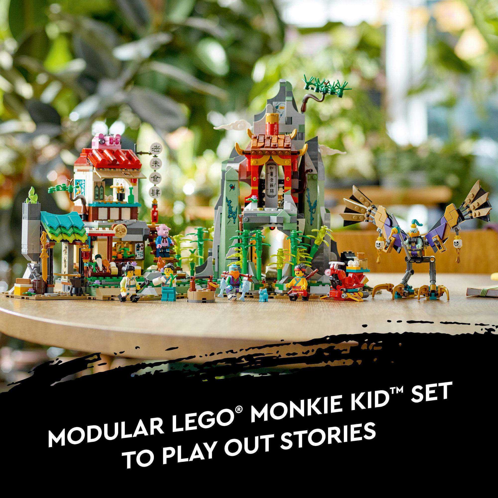 This 1,582-piece LEGO® Monkie Kid™ set includes 6 minifigures and 9 modules with functions and hidden elements.