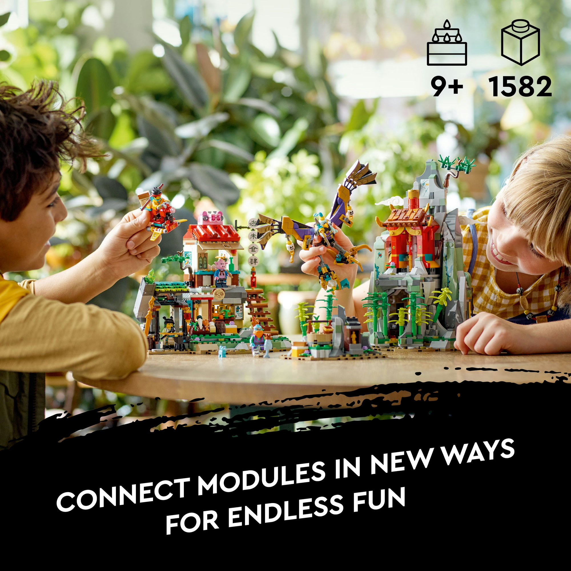9 modules let kids build the hideout as they like. Combine with The City of Lanterns (80036 sold separately) for expanded fun.