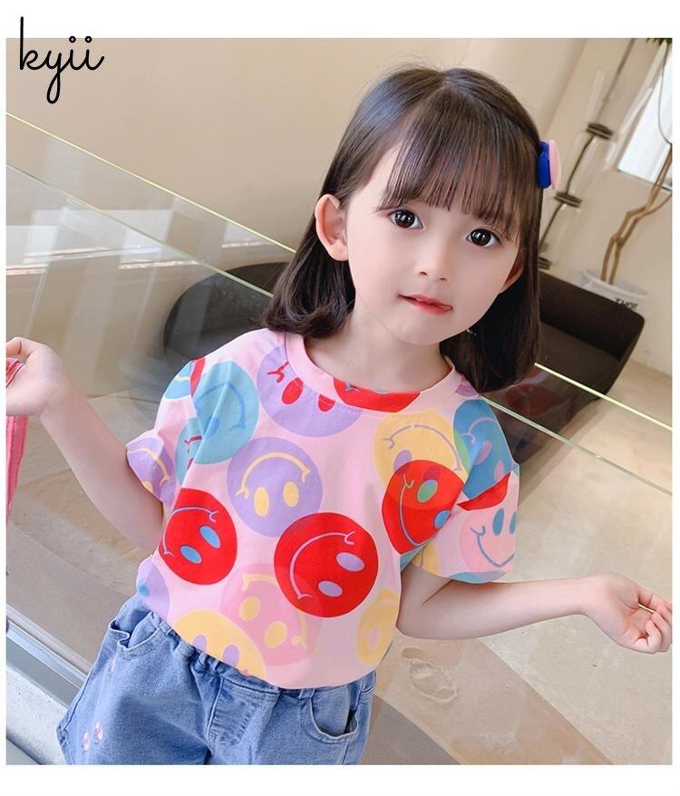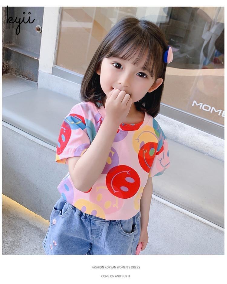 KYII Girls short sleeve summer children Cotton Korean Round-neck Top kyii0172