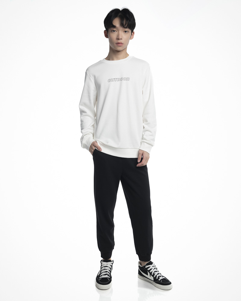 Regular Solid Coloured Long Sleeve Sweatshirt with Round Neck. Comes with Outdoor Slogan text in outline at the front. Made of cotton.