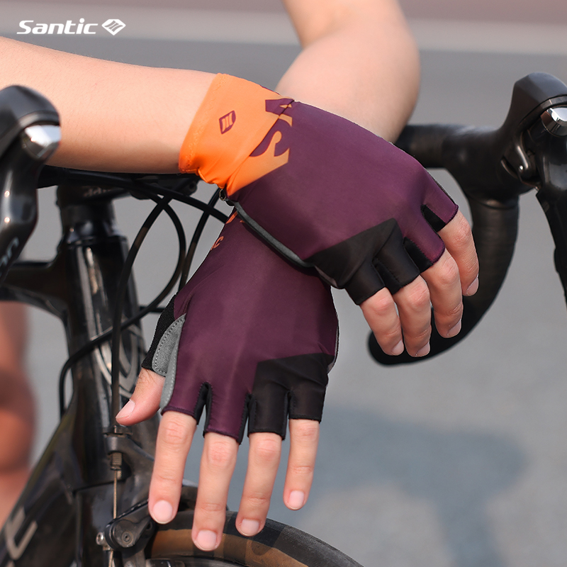 Santic Men Women Cycling Gloves Shockproof Breathable Road Bike Bicycle Short Finger Gloves